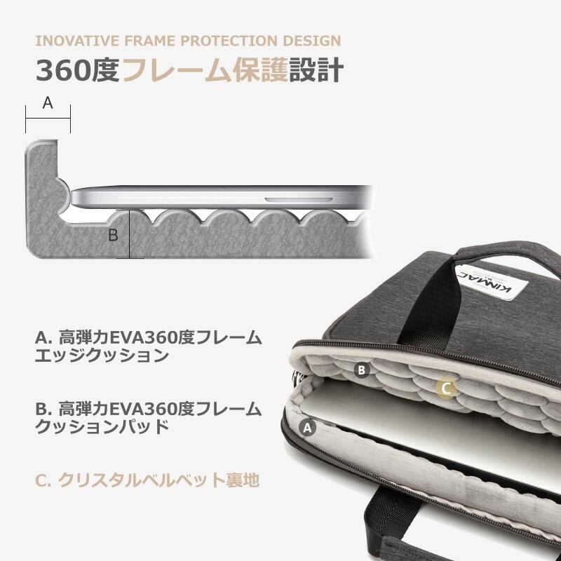 【360°保護】撥水加工された高品質生地の表面と特殊加工された高弾力EVAエンボッシングの内部で360度、どの方向で衝撃を受けても機器を安全に保護することができます。